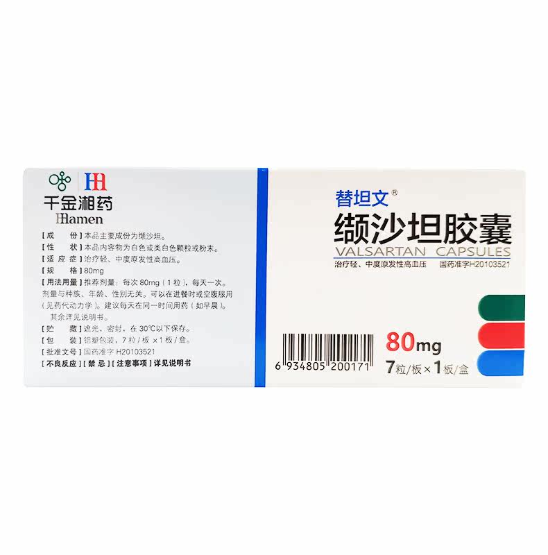 湘江 M 缬 缬 缬 80 мг*7 капсулы/коробка с более низким кровяным давлением Высокие подлинные продукты обеспечивают гипертонию, головокружение, замочивание ног, первичная прическа, высокое кровяное давление умеренная первичная гипертензия, гипертония, гипертония