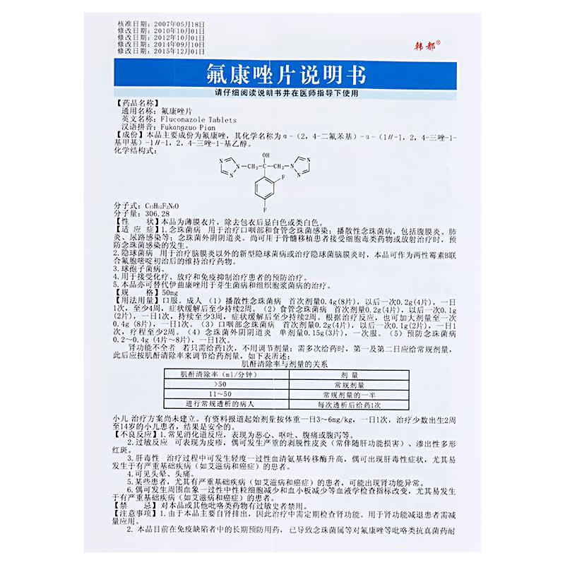 韩都 Таблетки флуанзола 50 мг*3 таблетки/коробка женская гинекологическая гинекологическая жемчужная вагинальная пневмония пневмония и мочевые тракты