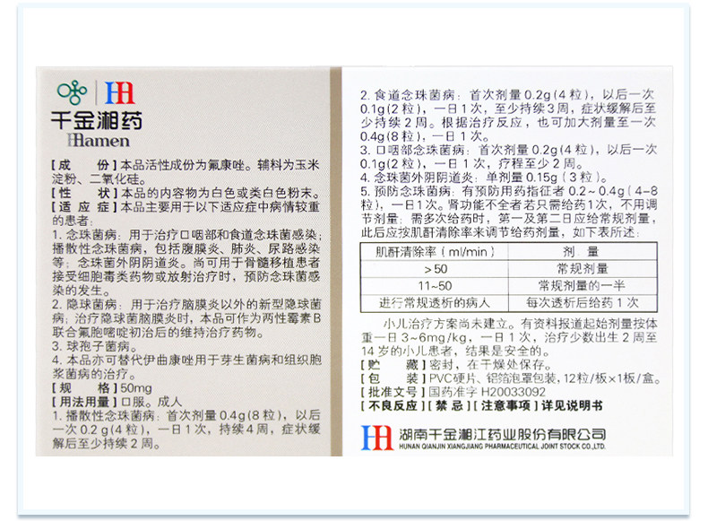 湘江 Капсула флонгзозола 50 мг*12 капсул/коробку.