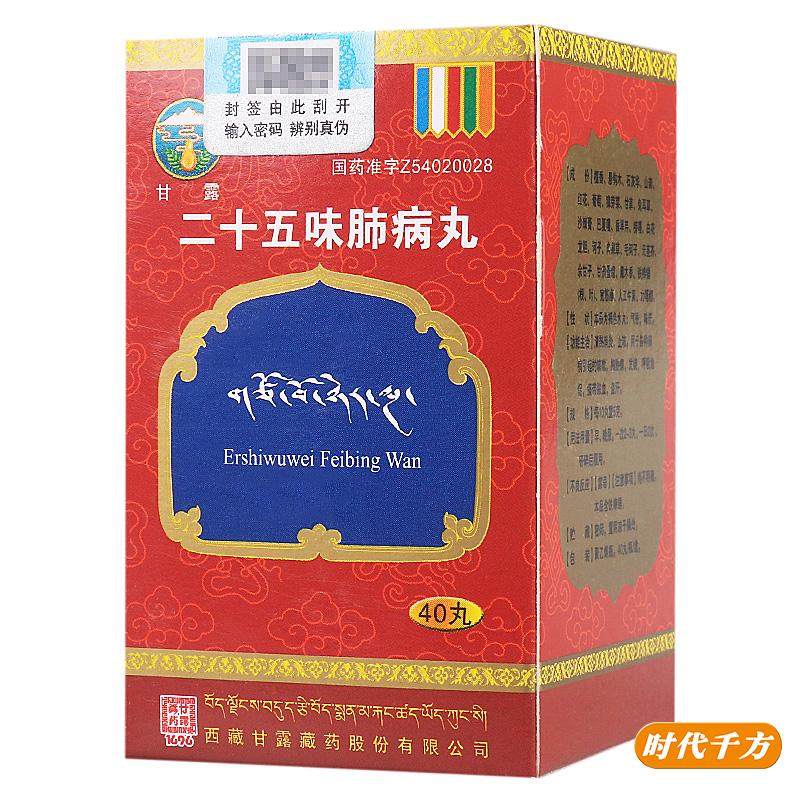 甘露 Двадцать пять вкусов легких сосудов 40 таблеток*1 бутылка/коробка прозрачная тепло, анти -инфляционный кашель, используется для кашля, боль в груди при различных заболеваниях легких