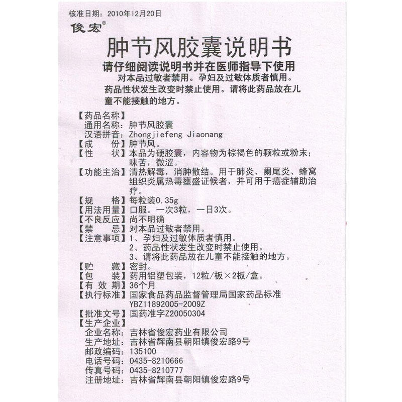 Джунхонг -опухший фестиваль ветровой капсула 0,35 г*24 капсулы/коробка