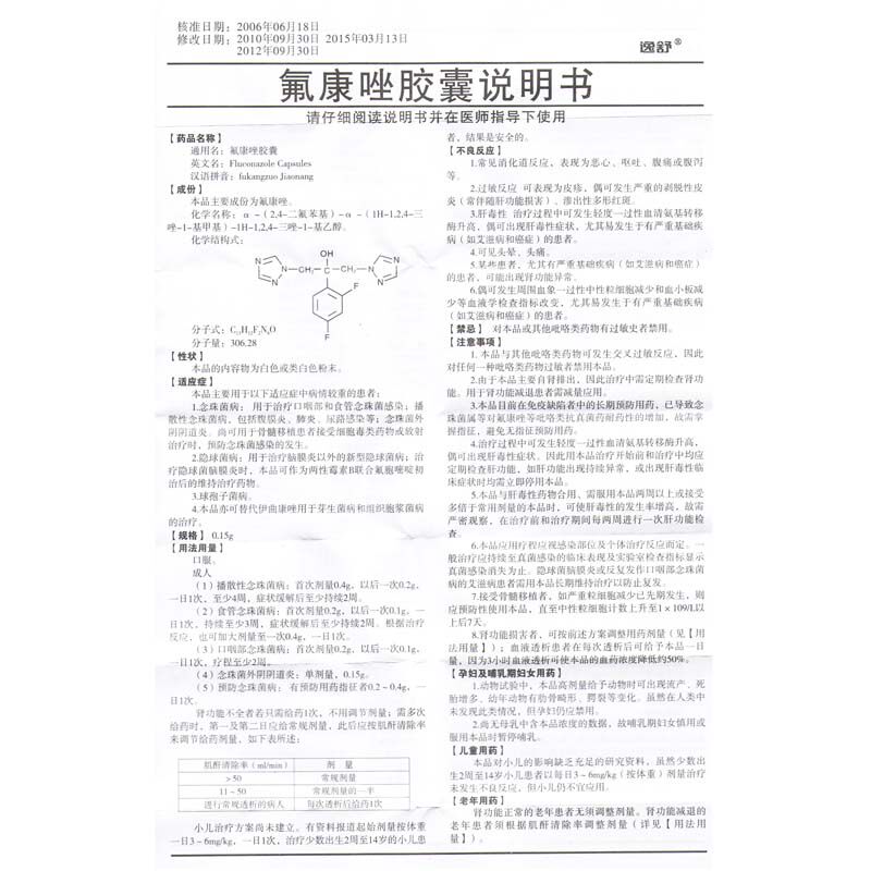逸舒 Капсула флонгзозола 0,15 г*6 капсулы/ящик для болезни Candida Cinobacteria pista pymia peritatitis Пневминит