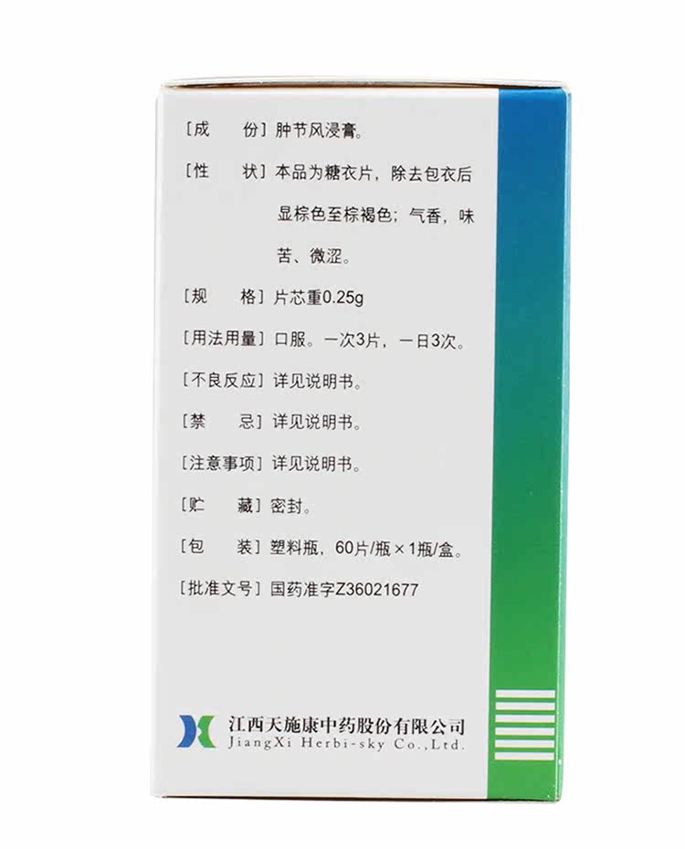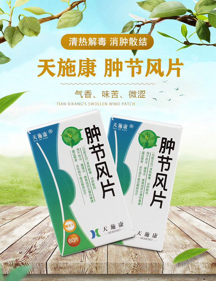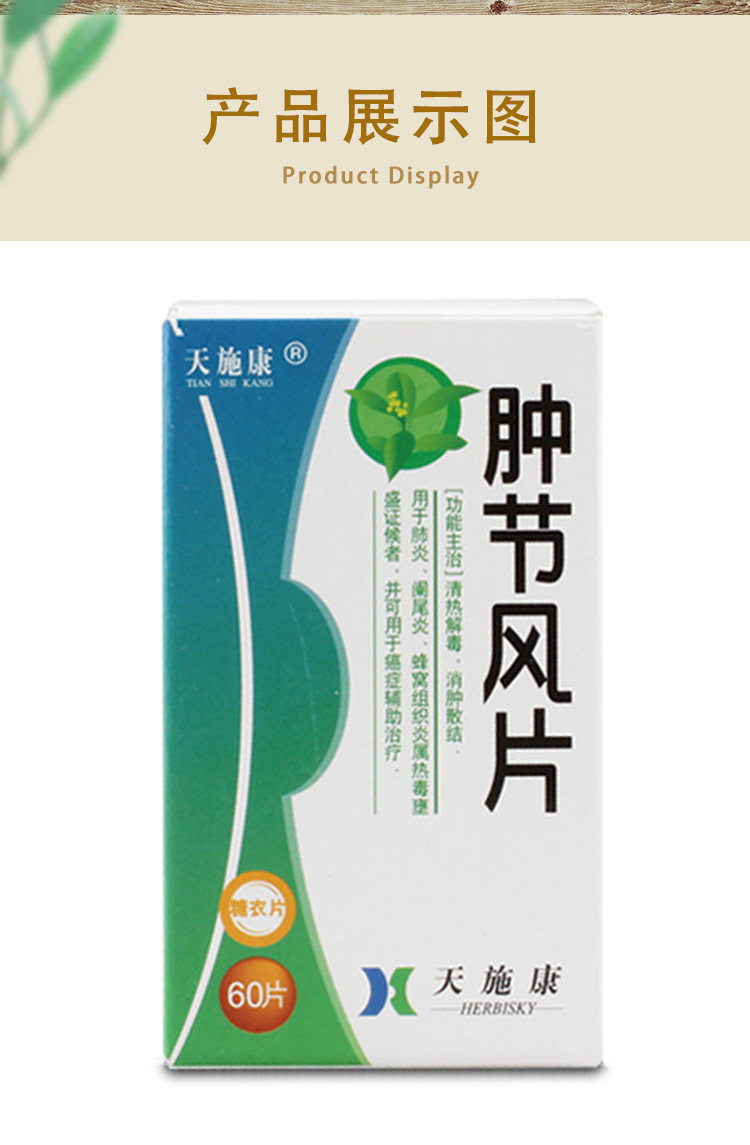 天施康 Опухший фестиваль ветряная пленка 0,25 г*60 таблеток*1 бутылка/коробка