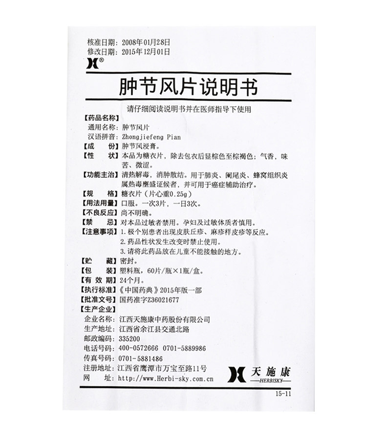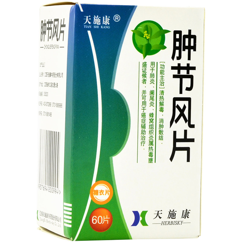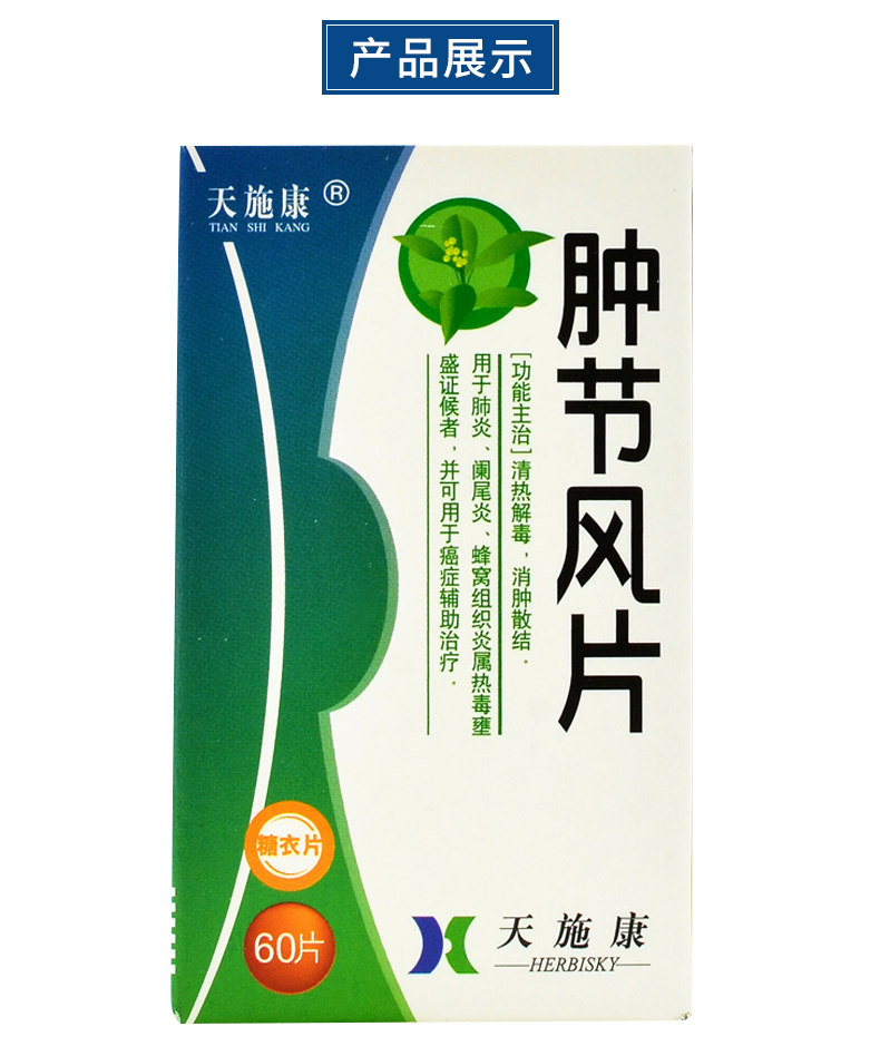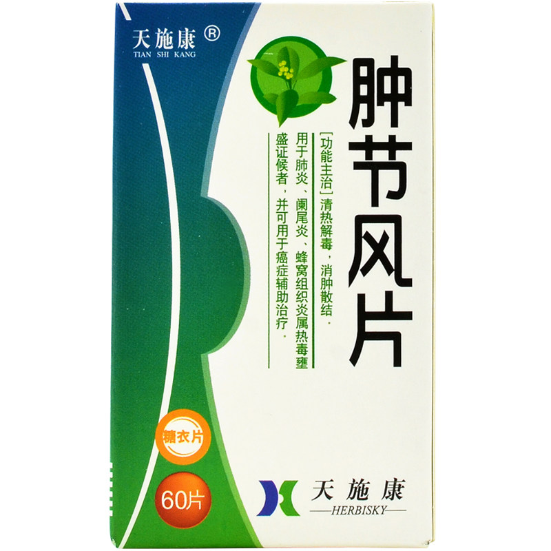 天施康 Опухшие фестиваль ветровые таблетки 0,25 г*60 Таблетки прозрачное тепло, детоксикация и набухание и дисперсионное узло для пневмонии аппендицит.