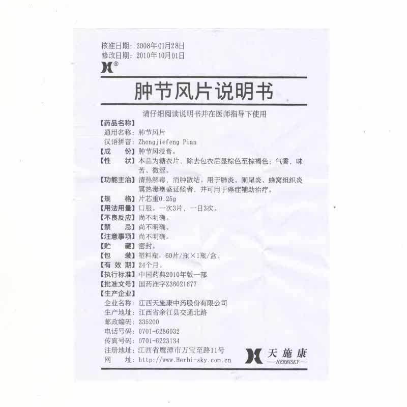 天施康 Опухшие фестиваль ветровые таблетки 0,25 г*60 таблеток*1 бутылка/коробка/коробка прозрачная тепло, детоксикация, отек, отека и диспергирующие узлы для пневмонии аппендицит сотовые ткани воспаление в тепло