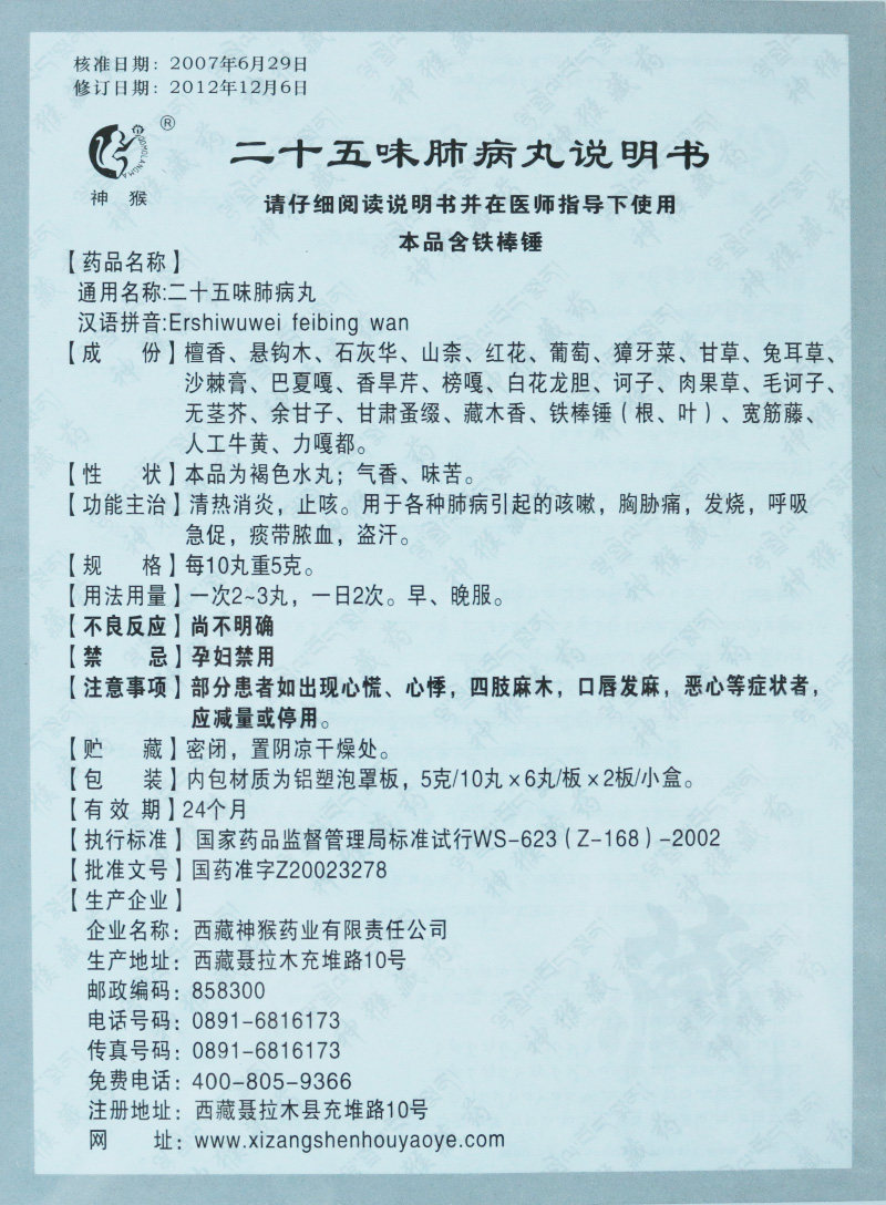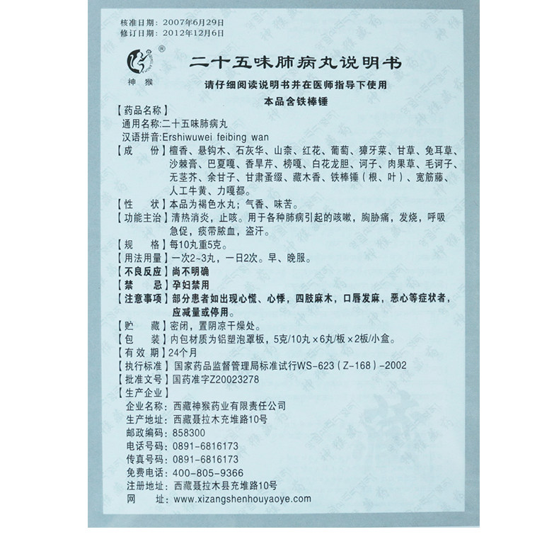 Вернувшись!】 God Monkey Twenty -Five Allasted Lung Pills 0,5 г*12 таблетки/коробка прозрачная анти -инфляция, анти -каша, кашель, лихорадка, дыхание, дышащий флагманский магазин