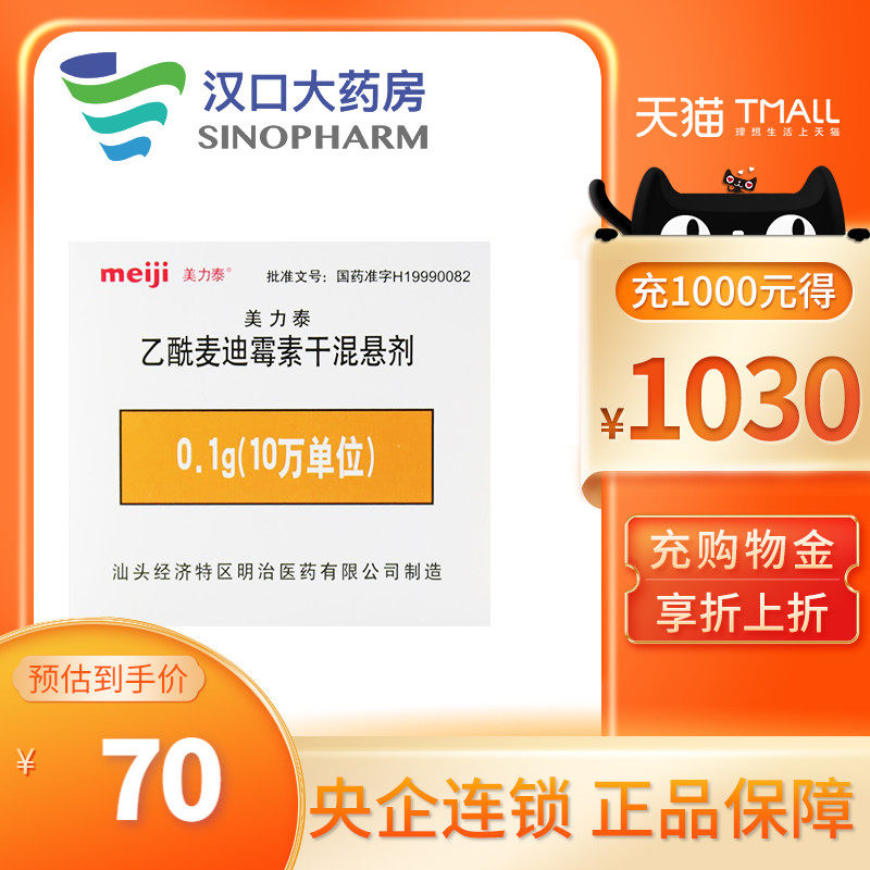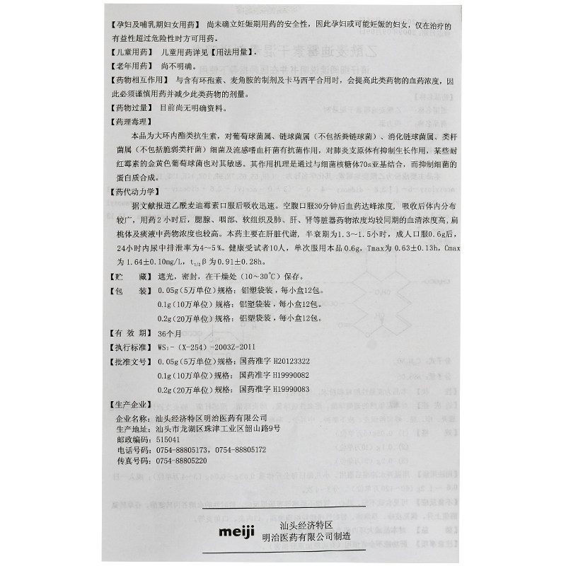 美力泰 Ацетил -мадико сухой суспензия 0,1 г*12 упаковки/коробка используются для пневмонии, бронхита, тонзиллита, фарингита, гриле, вызванного чувствительными бактериями