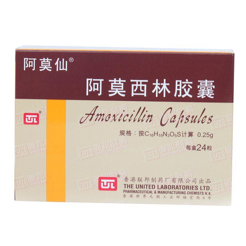 阿莫仙 Капсулы амоксицина 0,25 г*24 капсулы/ящик лихорад