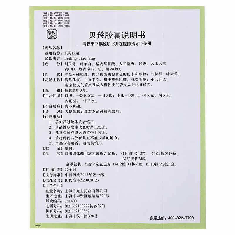 Лей -это антилопная капсула 0,3 г*12 капсулы/ящик против heat, мокрота, кашель, астма, отопление, кашель с астмой легких, Шанхай Лейюн Шэнглинг Капсула Флагманский магазин Аутентичный магазин Аутентичный