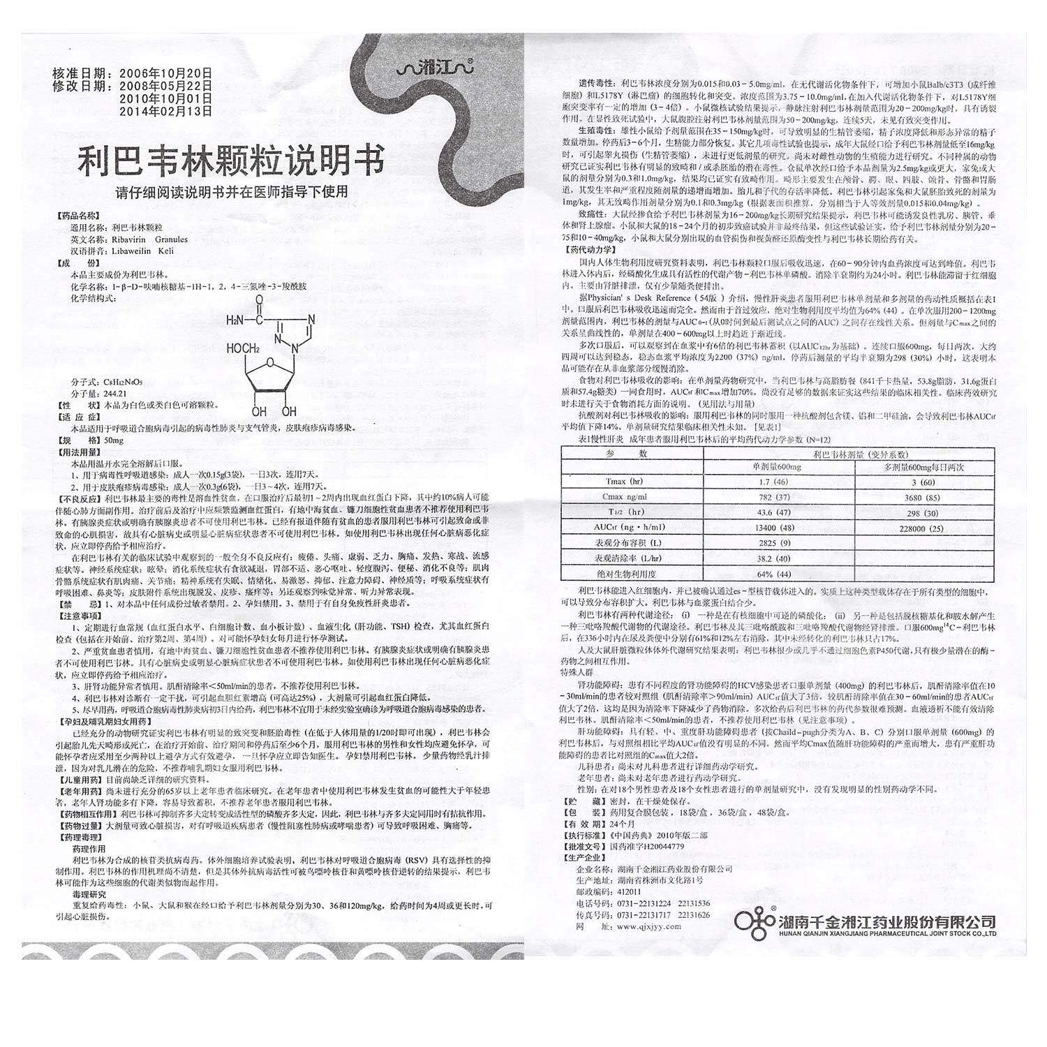 湘江 Гранулы Libaweilin 50 мг*36 мешков/коробка