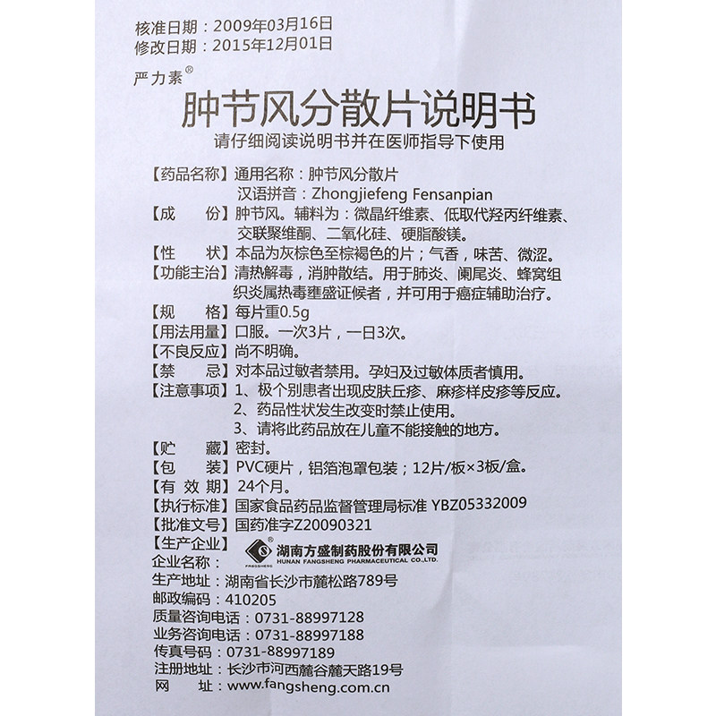 严力素 Опухшие таблетки разбросанного ветра 0,5 г*36 таблетки/коробка