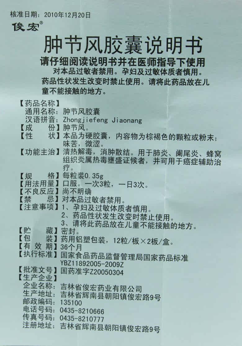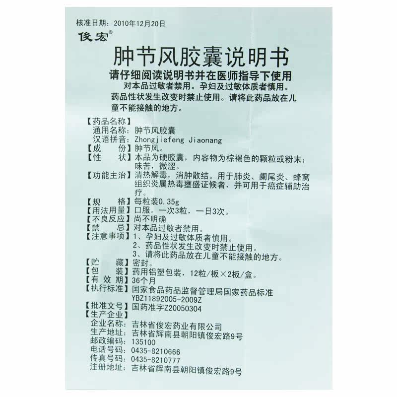 俊宏 Капсулы ветряного ветра Swolbage 0,35 г*24 капсулы/ящик для пневмонии аппендицит сотовой ткани воспаление ткани относится к доказательствам теплового отравления и может использоваться для лечения с помощью рака