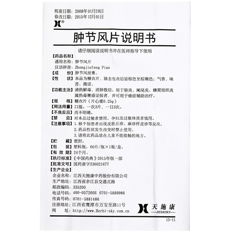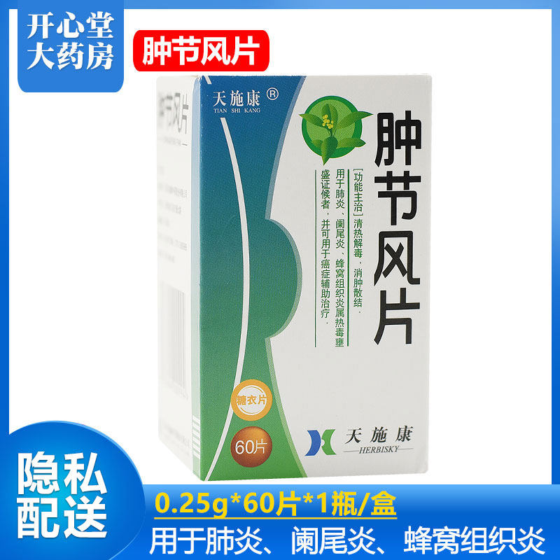 天施康 Опухшие фестиваль ветровые таблетки 0,25 г*60 таблетки*1 бутылка/коробка/коробка отек и рассеянного отравления тепла используются для пневмонии, аппендицита, воспаления тканей сотовой кости
