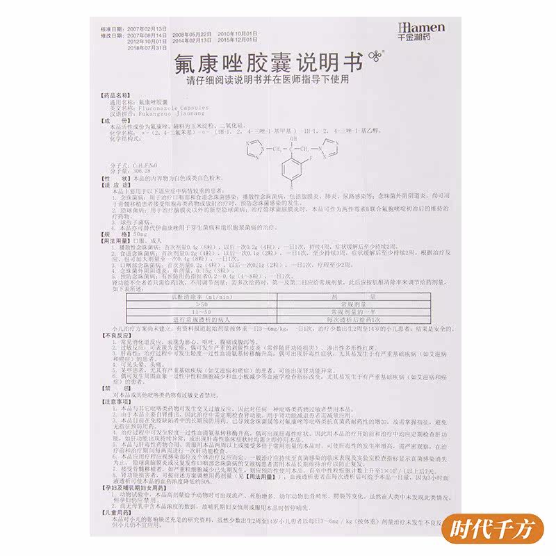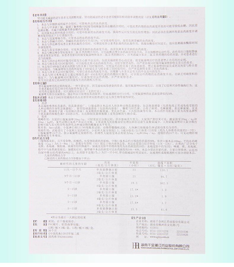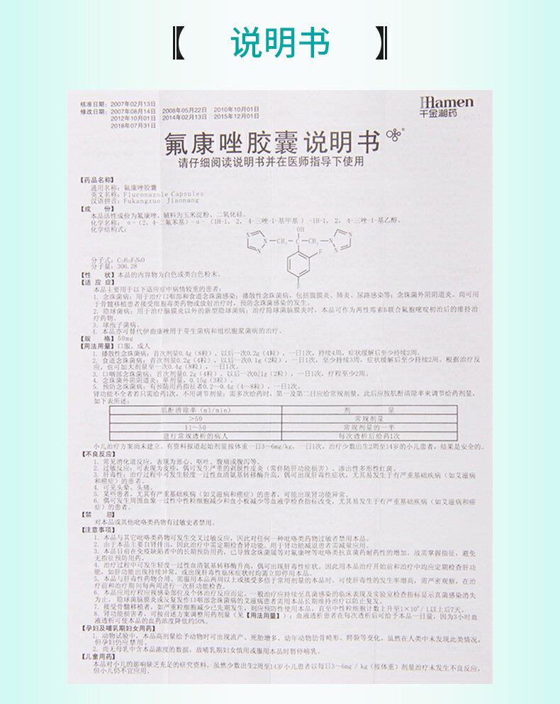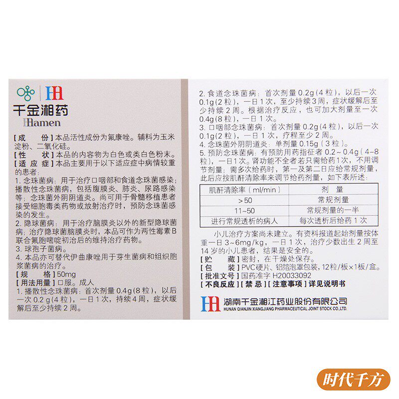 Qianjin Siangjjiang Flongzozole Капсула 50 мг*12 капсул для лечения рта -глотки и пищевода катакона и диссеминированной жемчужной фонеки включает перитонит, инфекция мочевывода легких