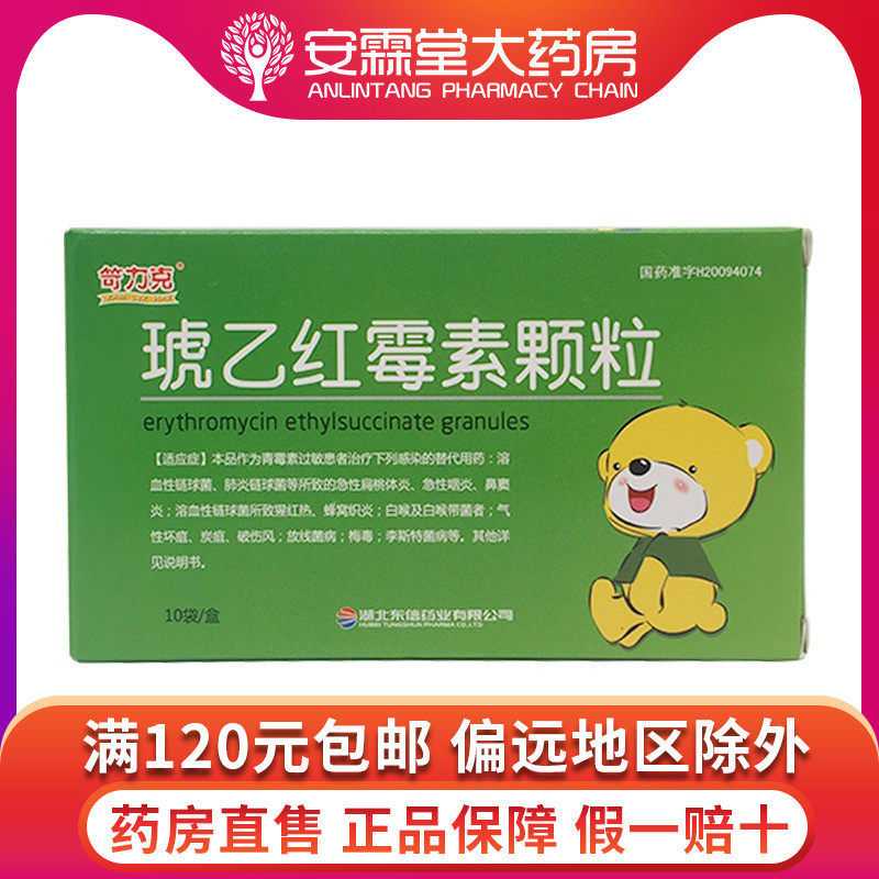 红 乙 琥 琥 Эритромициновые гранулы 0,1 г*10 мешков/коробка Rx Острый фарингит синит Red Hot Hotscomb Woven Win