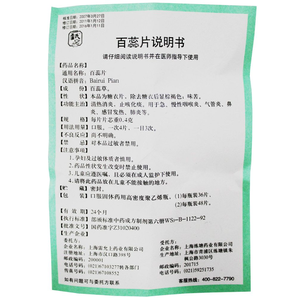 雷氏 100,4G*48 Таблетки/кашель с коробкой, мокрота, тепло -недобросовестная, анти -инфляционная пневмония пневмония, холод и лихорадка