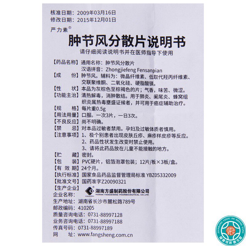 严力素 Распущенные ветры диспергированные таблетки 0,5 г*36 Таблетки/коробка для пневмонии аппендицит сотовая ткань Воспаление