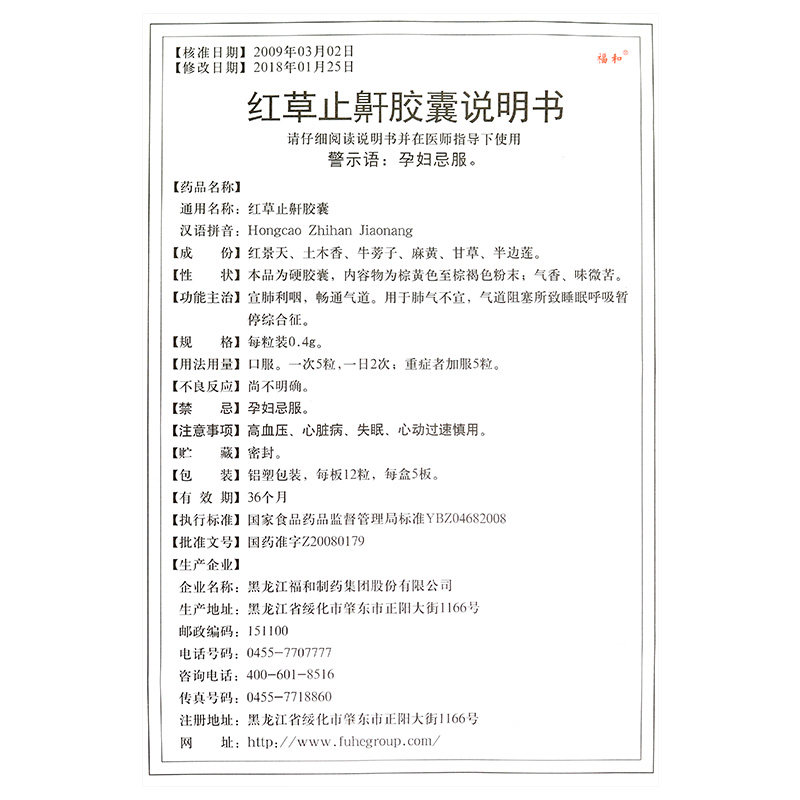 10 ящиков вручную 490] Фухэ -капсулы остановки красной травы 0,4 г*60 зерна/коробка Скюаньянби глотки с разглаживанием легкого легок.