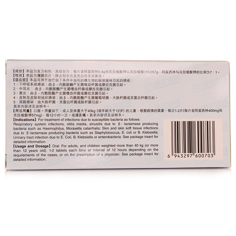 强力阿莫仙 Таблетки амоксициллина и клавуланата калия 0,457 г*6 таблеток в коробке Тонзиллит Синусит Средний отит Острый и хронический бронхит Крупозная пневмония и бронхопневмония Инфекционный аборт