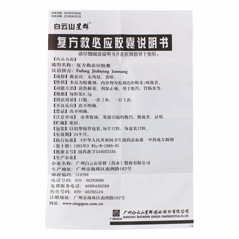 星群清叶 Составные спасательные капсулы 0,3 г*12 капсулы/ящик, тепло, детоксикация, сырость и облегчение боли, используйте их для диареи гастроэнтерит