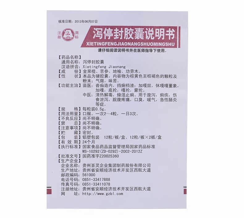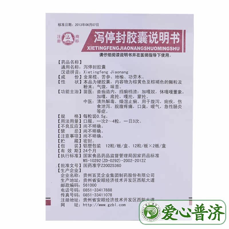 百灵鸟 Капсула уплотнения Xiteng 0,5 г*24 капсулы/ящик диарея и дизентерия травма пище