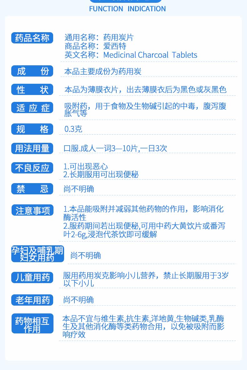 保药 Эсите лекарственные углеродные таблетки 0,3 г*100 таблетки*1 бутылка/коробка рвота и диарея