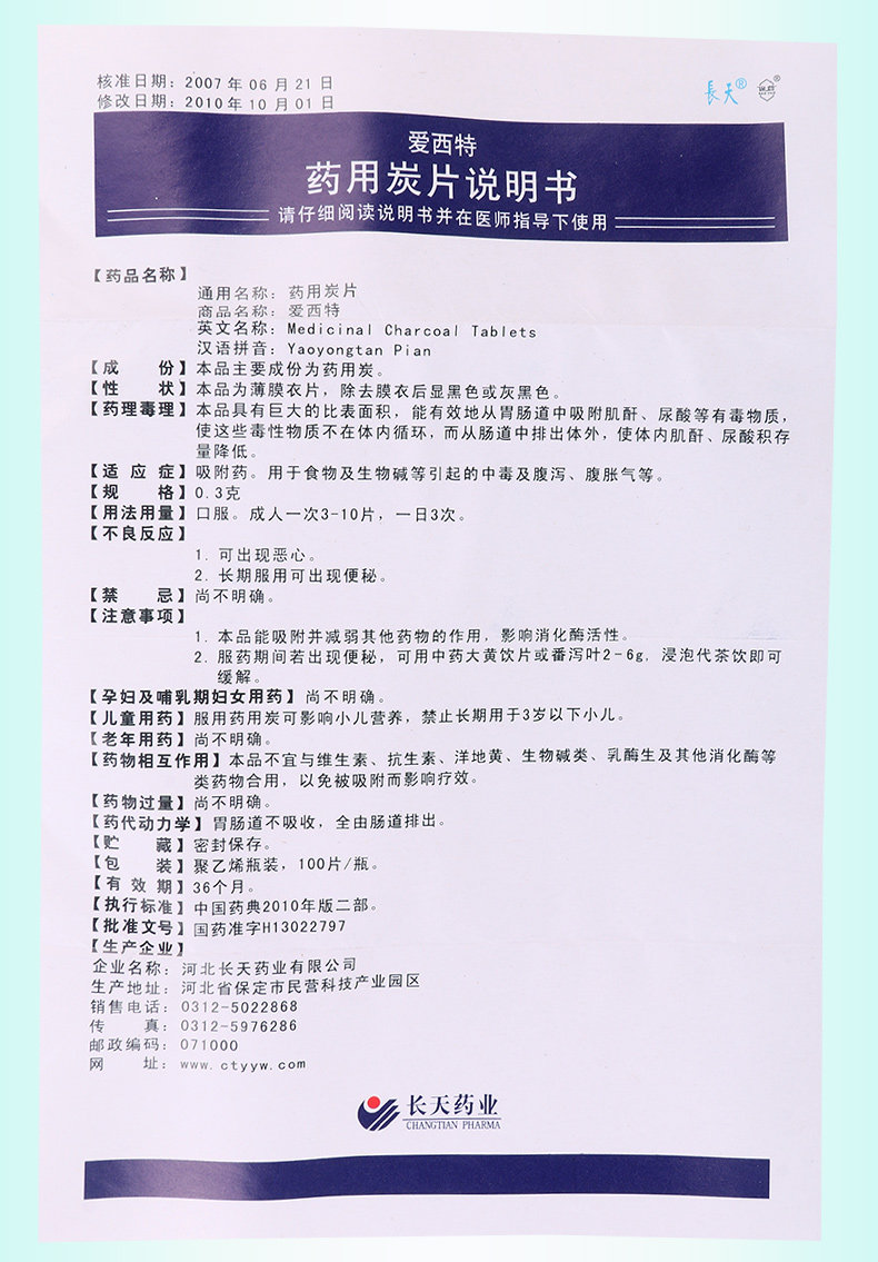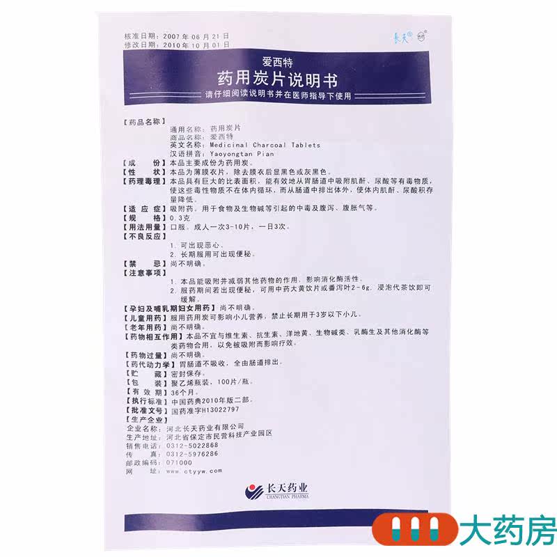 长天 Эсите фармацевтические таблетки углерода 0,3 г*100 Таблетки*1 бутылка/патоля