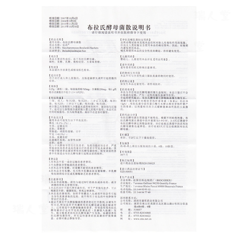 亿活 Бора дрожжи свободно 250 мг*6 мешков/коробка для взрослых детей, импортированные лекарства