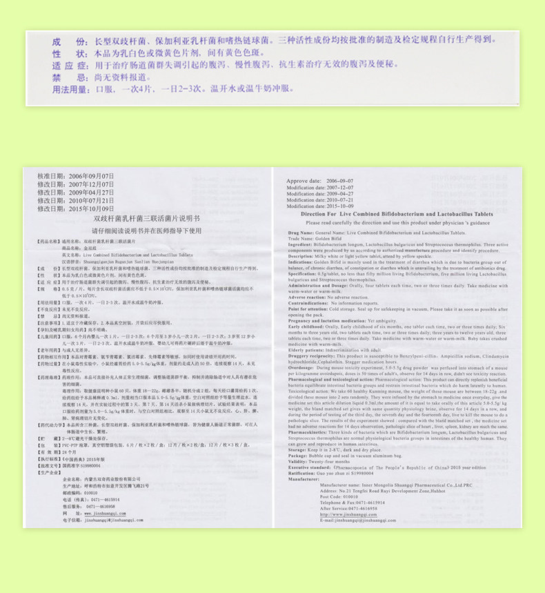 Бесплатная доставка+воздушный транспорт] Wanzawa Shuangqi Golden Bisidobacterium Bacteria lactobacillus trinobius 0,5 г*36 Таблетки/тестирование кишечника обнаружили диагноз Хроническая диаграмма антибиотикопейская терапия