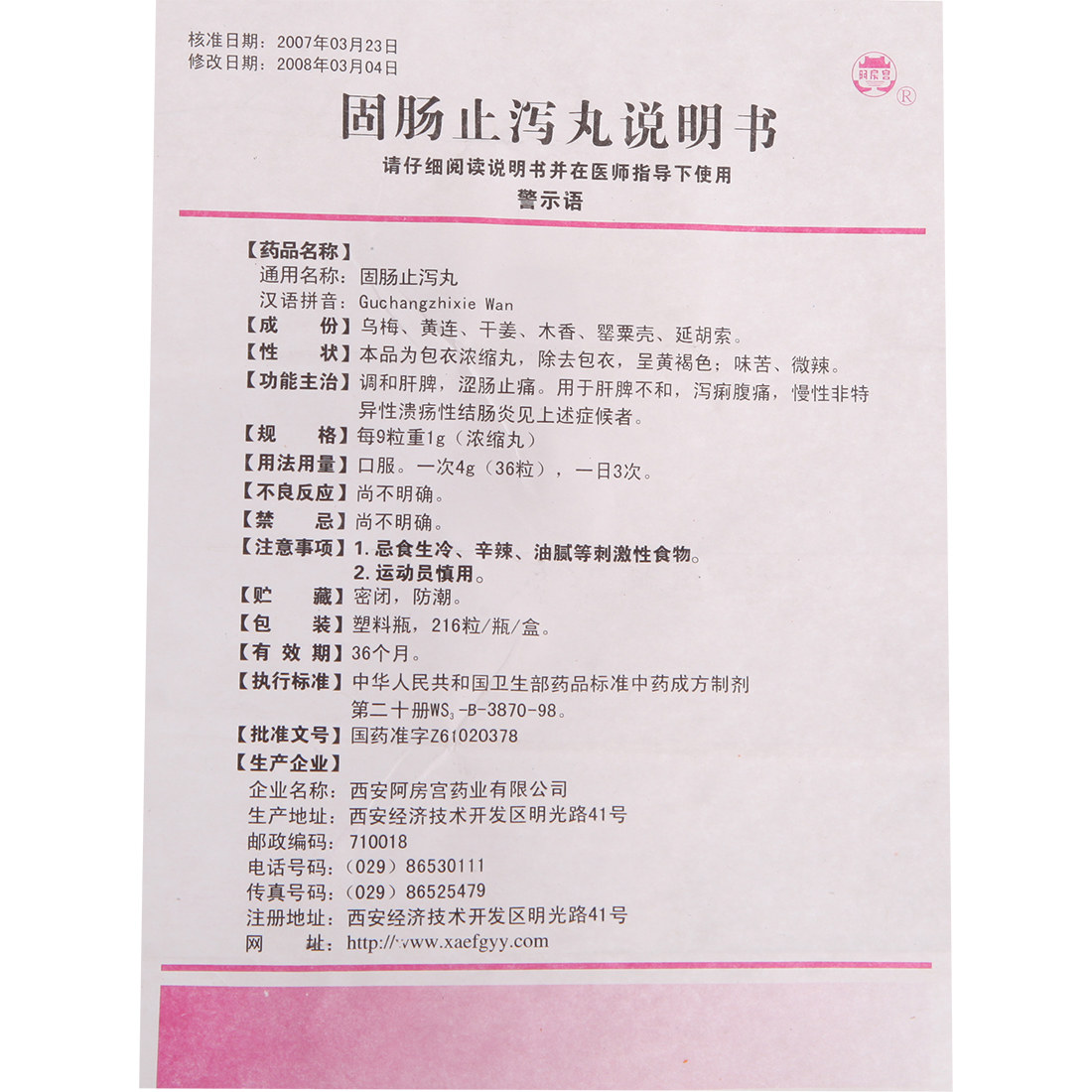 阿房宫 216 капсулы твердой кишечной анти -диаргея таблетки*1 бутылка/коробка