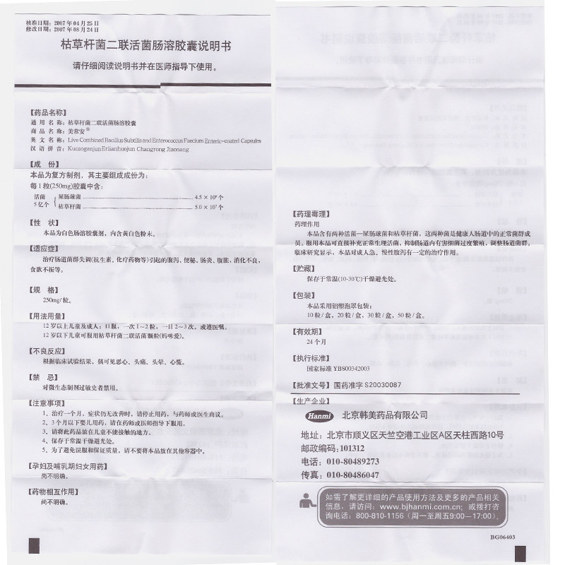 美常安 Мей Чанган Бактерии Бактерии Diablag Live Capsule 250 мг*10 Столичный/коробка