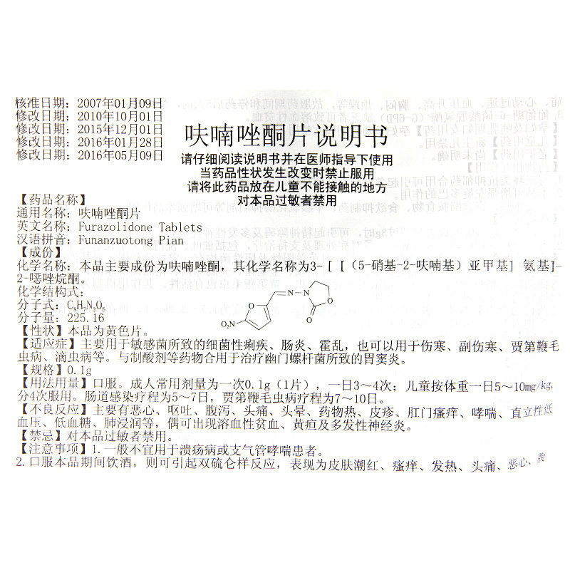 力 片 Таблетки фуразолона 0,1 г*100 таблетки/бутылка