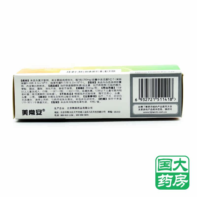 美常安 Meichangan Bacillus Bacteria Diablag Live Capsule 250 мг*30 Метл/коробка [флагманский магазин Guoda Pharmacy Store]