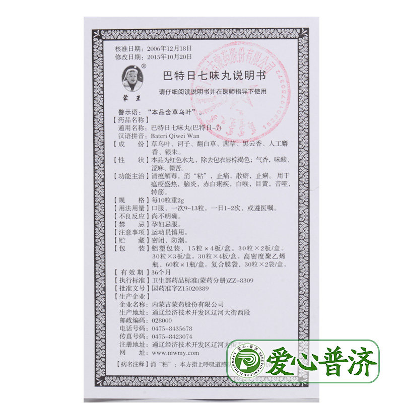 蒙王 Бартинные таблетки Qiwei (бартер-7) 60 зерна*1 бутылка/коробка детоксикация чумы, противовоспалительная боль, стагнация, стаз, антистрация и облегчение диареи