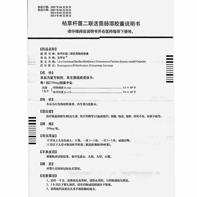 美常安 Bacillus bacillus di -linked живые капсулы 250 мг*10 капсул Лечение кишечной полисаллеры диарея алмазной боли акунит запоты брюшной полости и расстройство желудка