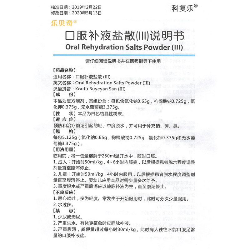 乐贝奇 Пополнение полости рта соль 6 мешков взрослых детей диарея и диарея вызывают добавку обезвоживания и профилактика хлора калия и обработка дегидратированных тонизированных соленой воды Гранулы содержат хлоридный сахар калий.