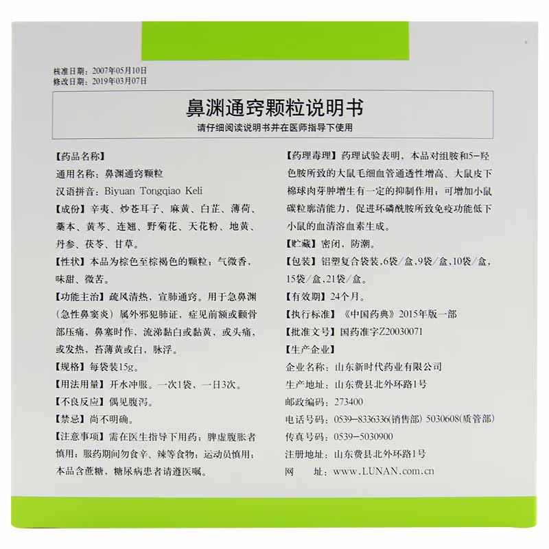 Низкий?] Lunan Nose Yuan Tongqiao Гранулы 15G*15 мешков/ящик для лба или скулости скулы, застой носа, насморк, белый или липкий желтый, или головная боль, или лихорадка, тонкая желтая или белая, пульс плавает.