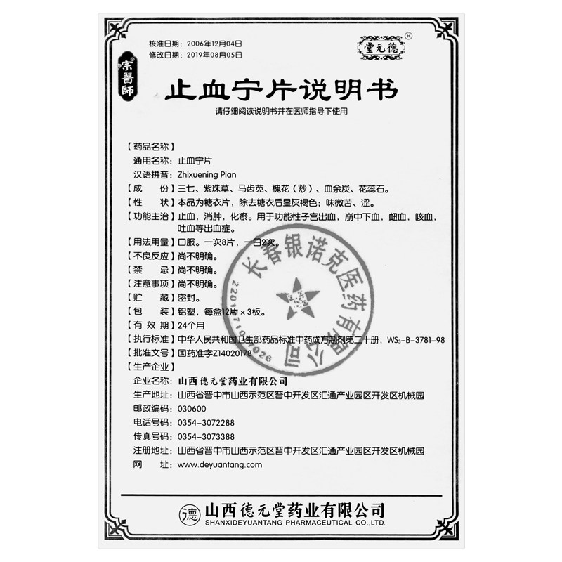 堂元德 36 таблеток/коробка таблеток гемостаза для функционального кровотечения матки, рухнувшей крови, крови, крови, кашля крови, рвота крови, такого как геморрин RX