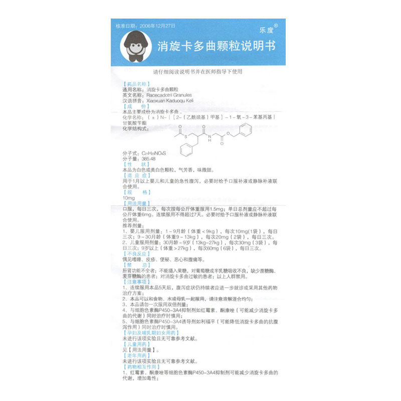乐度 Капитальная карта Дюкер Гранулы 10 мг*6 мешков/коробки, младенца дети и дети Острая диарея, диарея, диарея, боль в животе, боль в животе