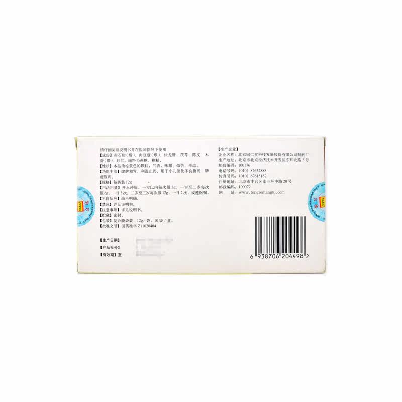同仁堂 Педиатрические анти -диаргея частицы 12G*10 мешков/коробка