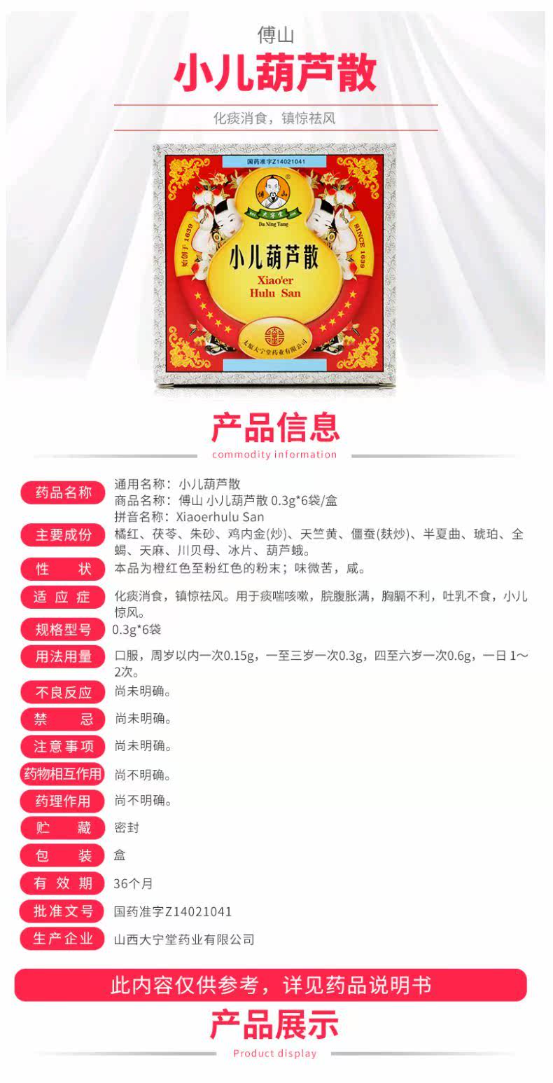傅山 Педиатрическая тыква рассеяние 0,3 г*6 мешков/коробка [флагманский магазин Guoda Pharmacy]