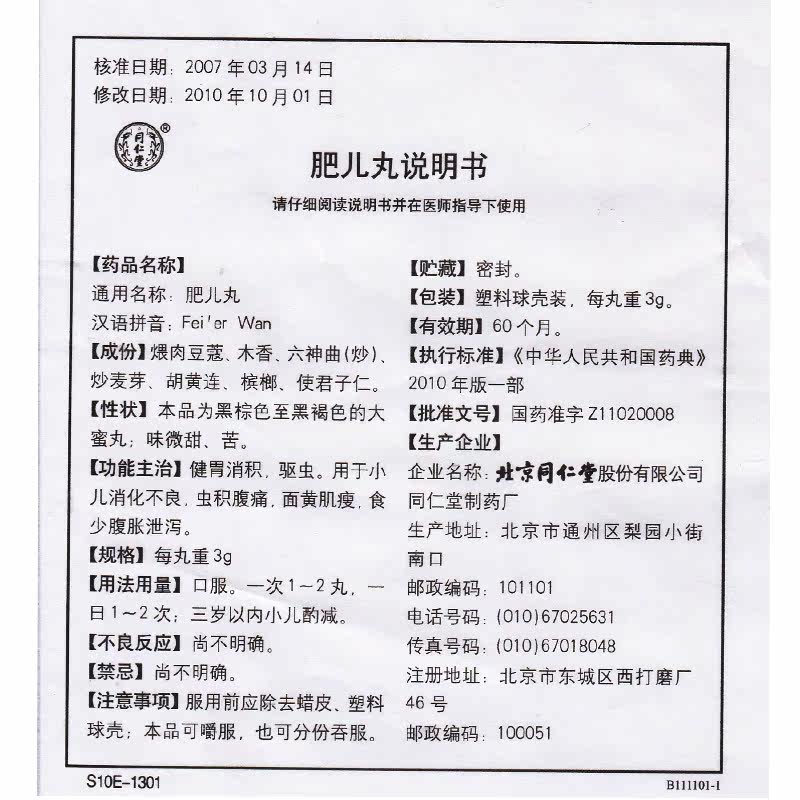 同仁堂 Таблетки Feier 3G*10 таблетки/коробка разделите пищеварительное пищеварительное расщепление пищеварения желтой мышцы тонкой пищи и меньше вздутия вздутия