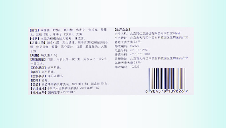 同仁堂 Педиатрические таблетки для пищи 1,5 г*10 таблетки/ящики пищевого стагнации и пожара в стагнации используются для застоя, вызванного теплом застоя пищи.