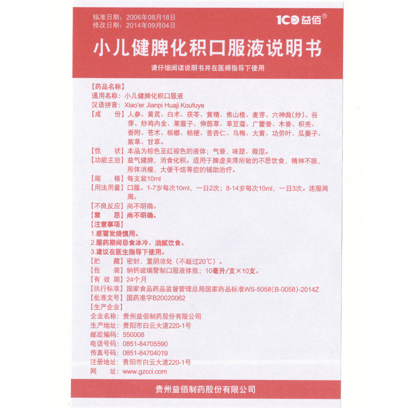 益佰 Педиатрическая селезенка остеопластинг жидкость 10 мл*10 поддержка/коробка