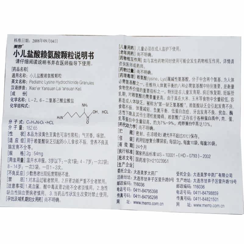 美罗 Педиатрические гранулы гидрохлорида лизина 2 г: 54 мг * 10 мешков в коробке