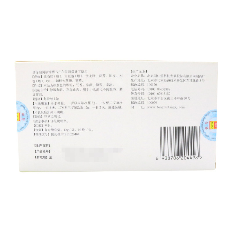同仁堂 Детские анти -диаргея частицы 12G*10 мешков/ящик, селезенка, сырость желудка, диарея дефицит дефицита селезенки Диарея расщепление расщепления расщепления расщепления.