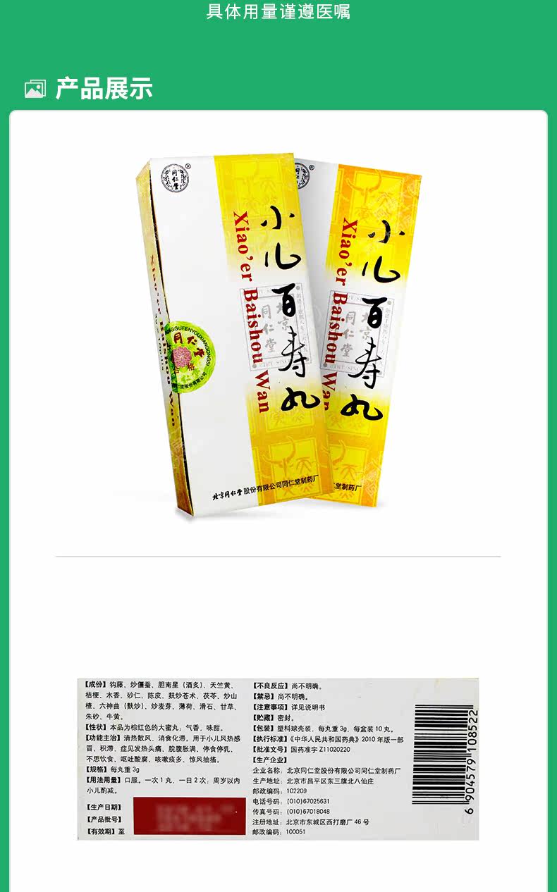 同仁堂 Педиатрическая байшоу Ван 3G*10 таблетки/ящик для секции тепло, вздутие живота и прорывной грудь Стоп.