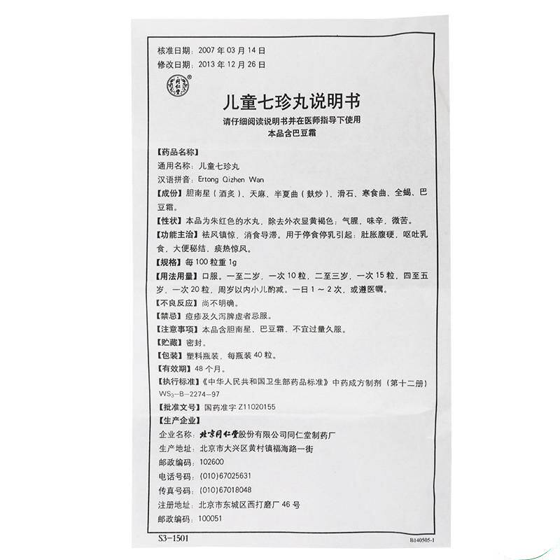 同仁堂 Детские таблетки Qzhen 40 зерна*2 бутылки/коробка
