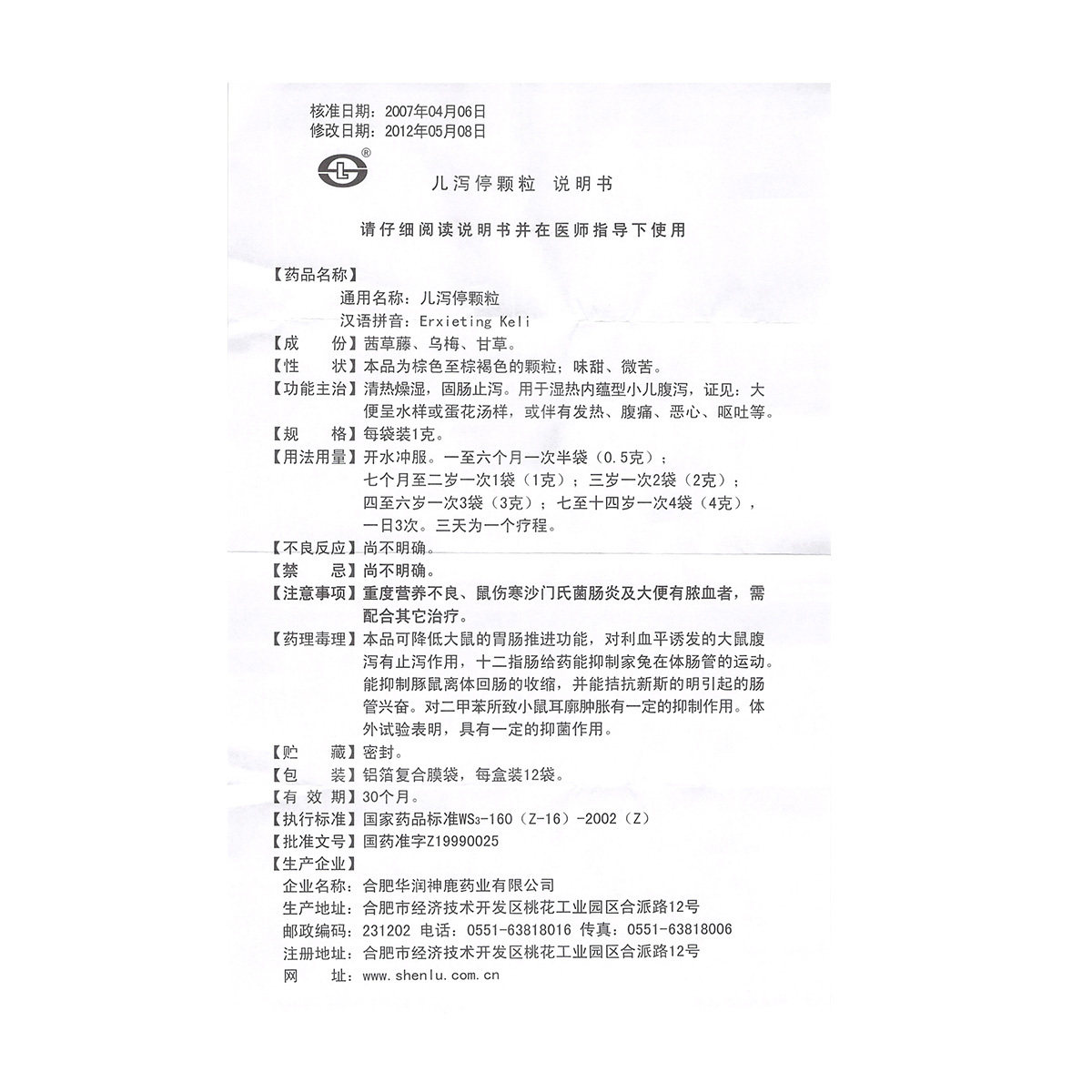 神鹿 Erxitipang Гранулы 1G*12 мешков/ящик прозрачный тепло и сухая сырость, усилие кишечника и останавливают диарею.