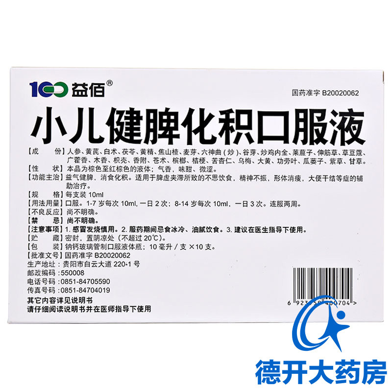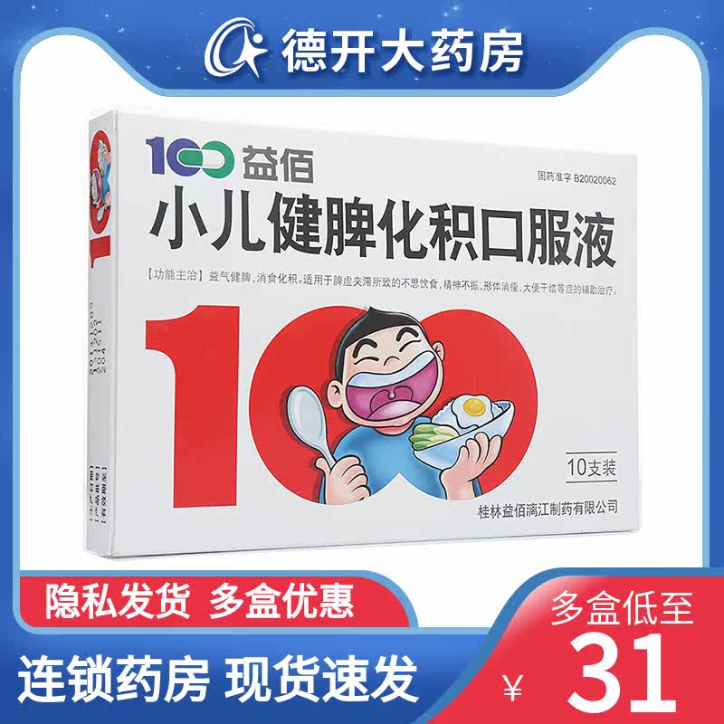 益佰 Детская селезенка, повышающая и пищеварительную пероральную жидкость 10 мл*10 кусочков/коробки, пополнить ци, укрепление селезенки и пищевой пищи и пищеварения и пищеварения.